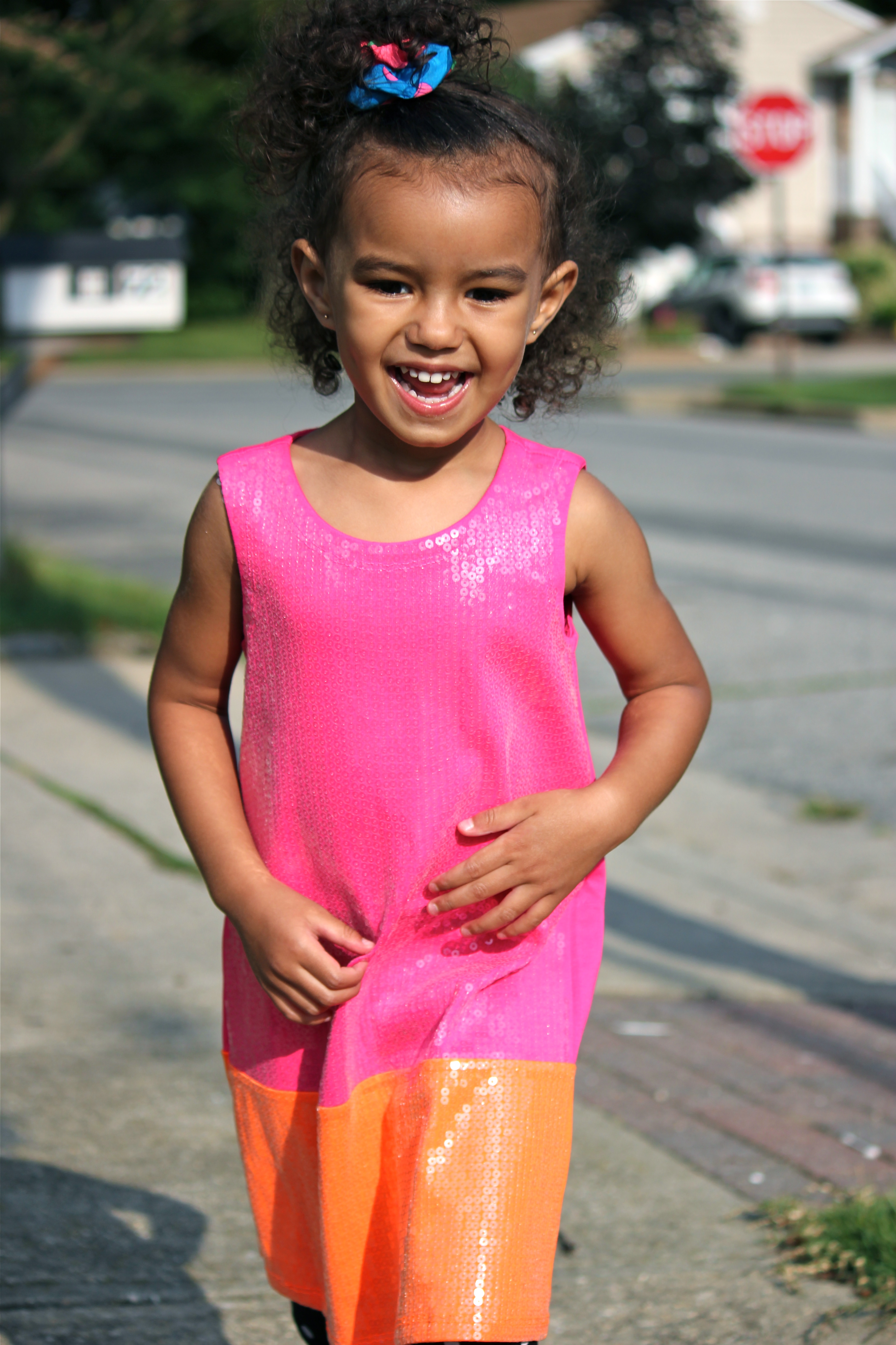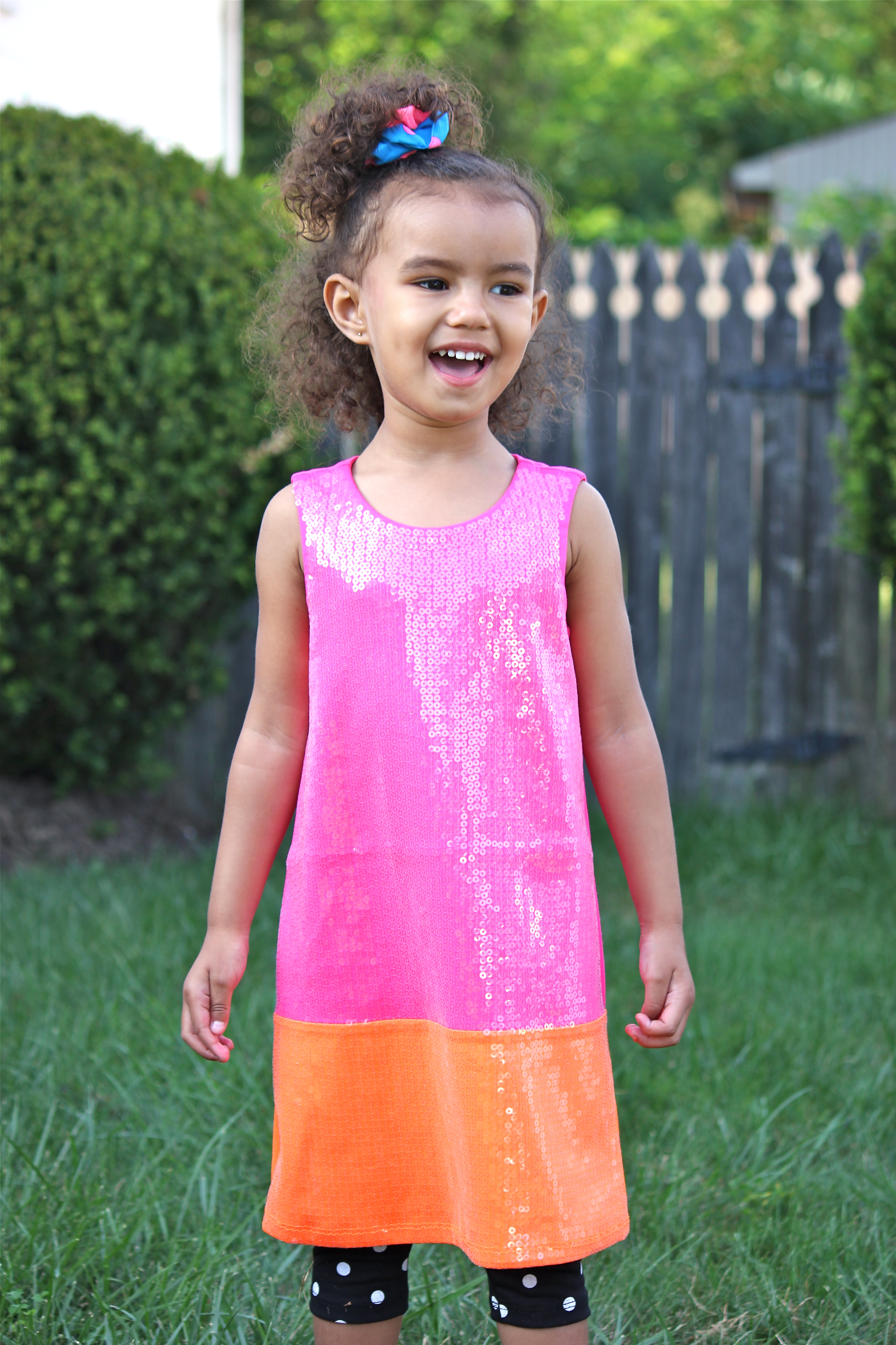 Shopping for a new school year is more than just buying supplies. It means copping to the hottest new looks. When you look good, you feel good, and you do good too. But don't get it twisted, I'm a mama who shops on a budget. Most of my shopping is done online. I scour the internet and circulars for coupons in order to get great deals. I was recently introduced to FabKids.com. It's a kids Fashion Club started by a group of parents including mom and actress, Christina Applegate. Princess has become quite a fashionista. In fact, she gets more excited about a dress than she does a doll. She picked out this FabKids sequin number complete with leggings and scrunchies.